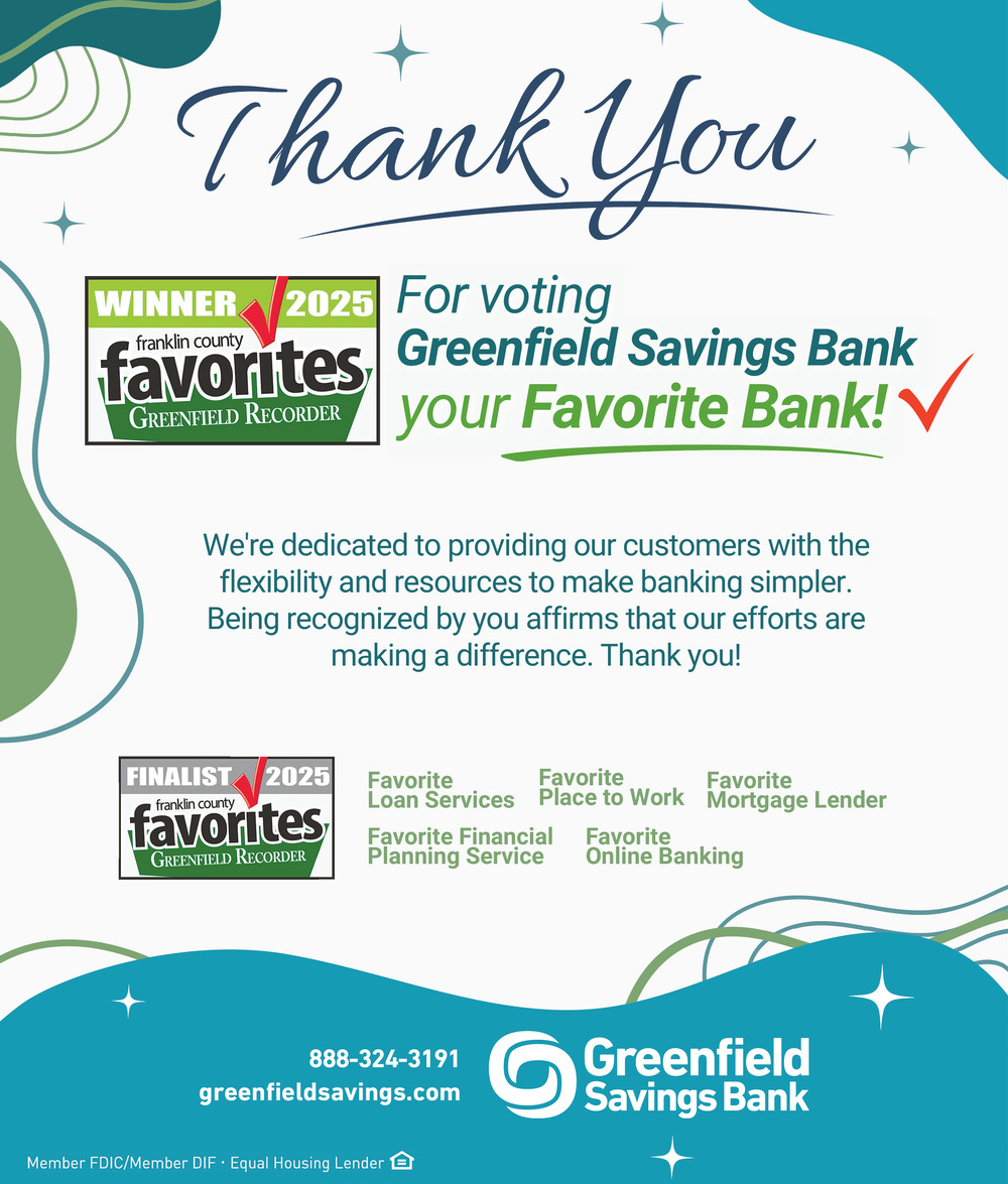 Oct 25, 2025. Greenfield Savings Bank Banking Ads from The Greenfield Recorder