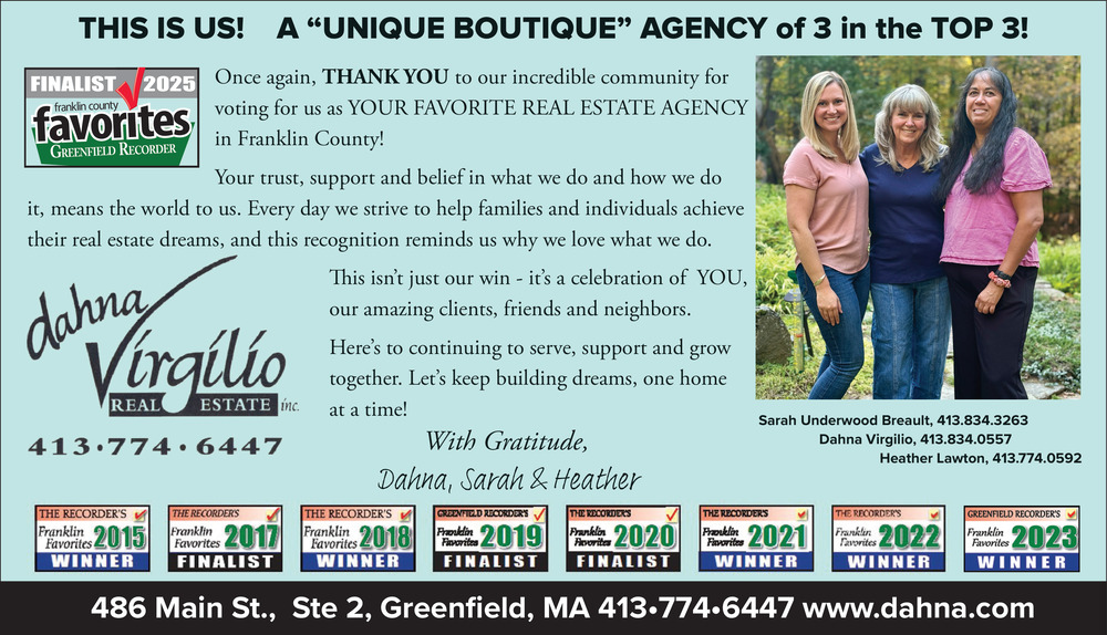 Oct 25, 2025. Dahna Virgilio Real Estate Inc Real Estate Ads from The Greenfield Recorder