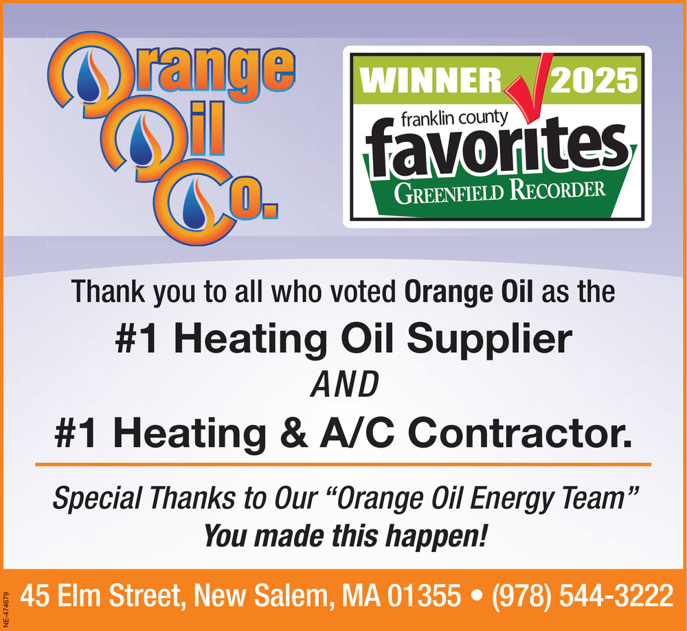 Oct 25, 2025. Orange Oil Co Oil Ads from The Greenfield Recorder