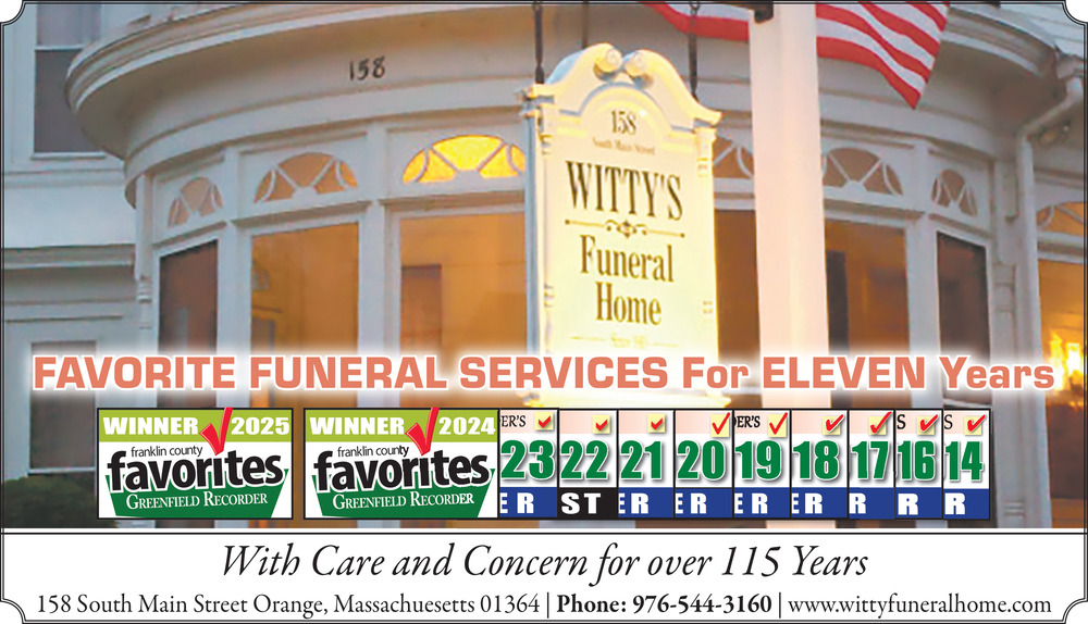 Oct 25, 2025. Witty's Funeral Home Funeral Ads from The Greenfield Recorder