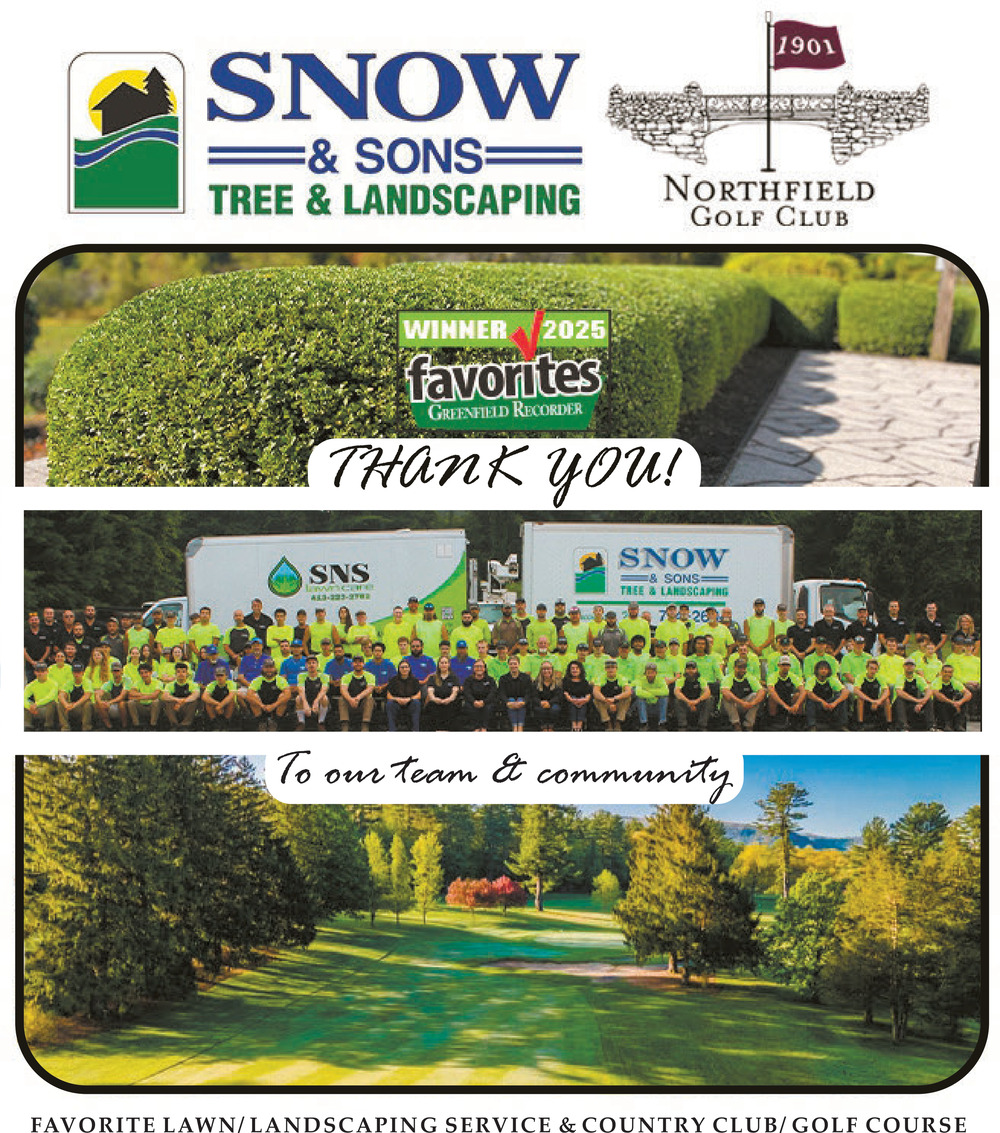 Oct 25, 2025. Snow & Sons Tree & Landscaping Home & Garden Ads from The Greenfield Recorder
