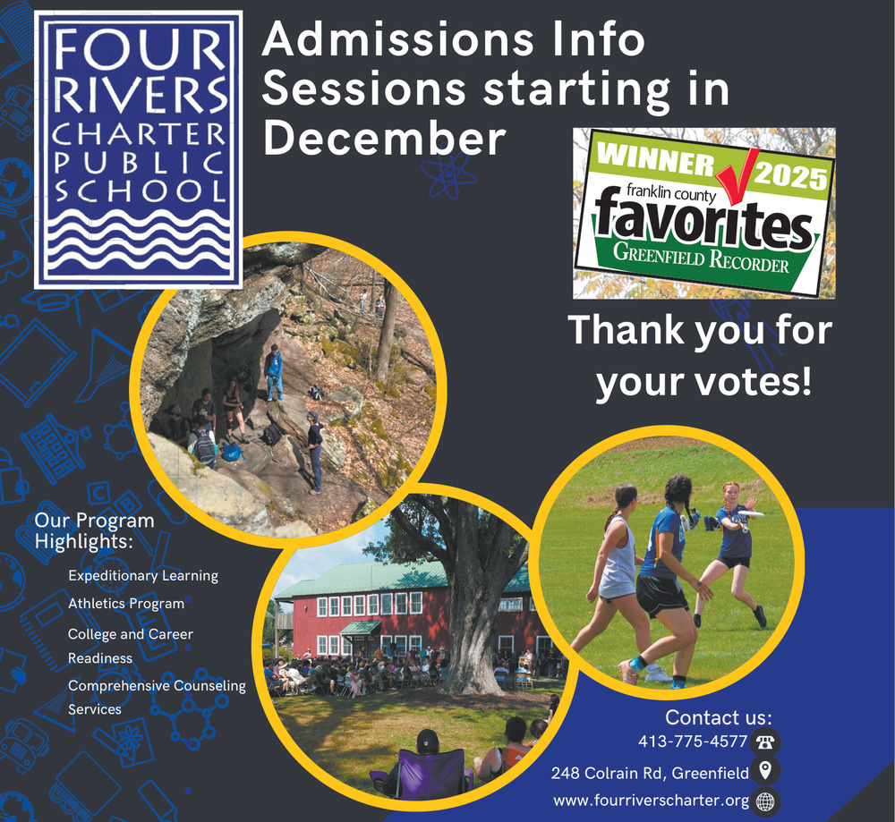 Oct 25, 2025. Four Rivers Charter Public School Education Ads from The Greenfield Recorder