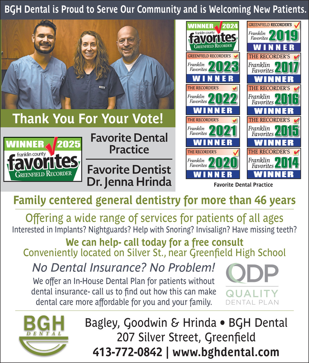 Oct 25, 2025. BGH Dental Dental Ads from The Greenfield Recorder