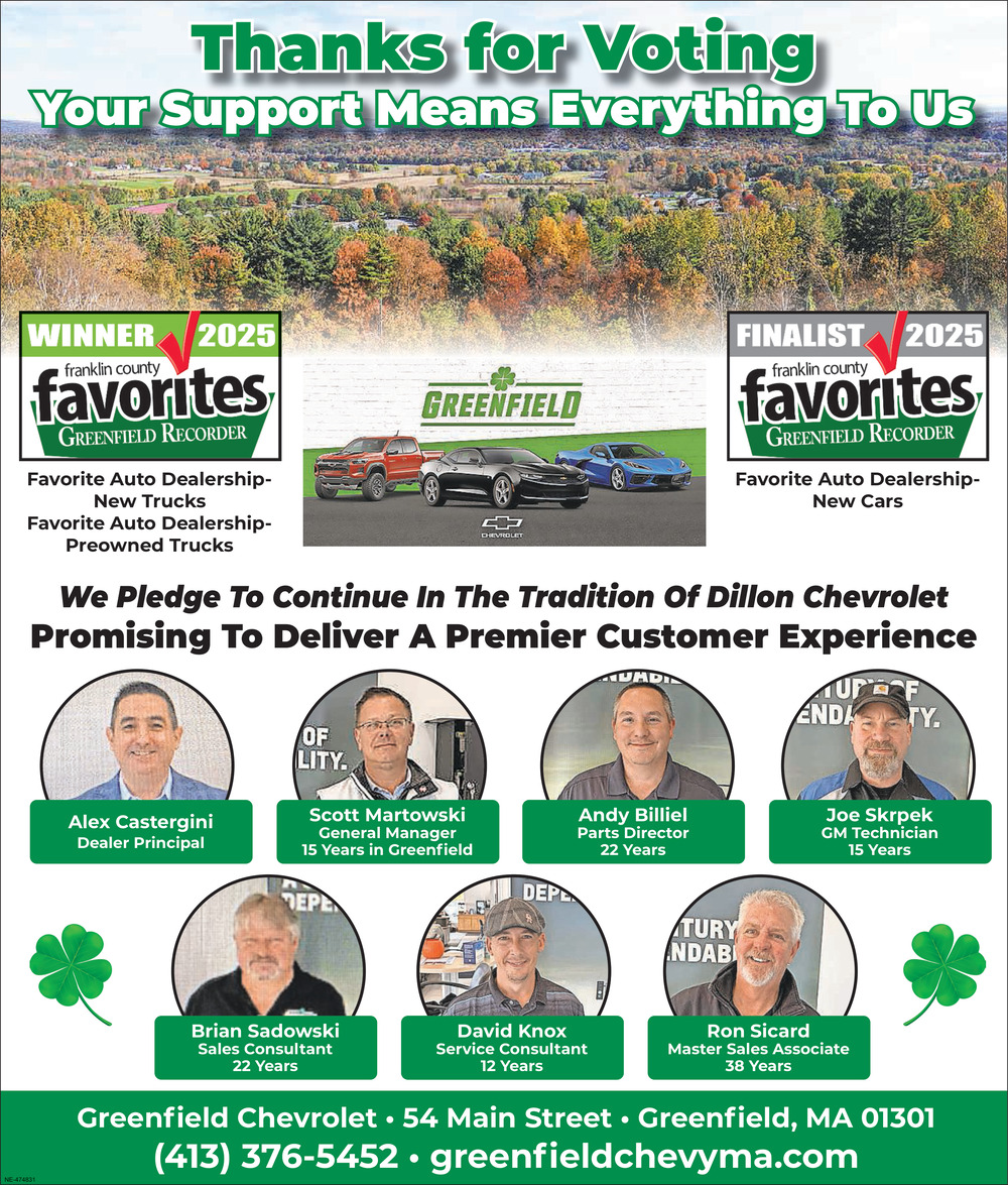 Oct 25, 2025. Greenfield Chevrolet Auto Dealers Ads from The Greenfield Recorder