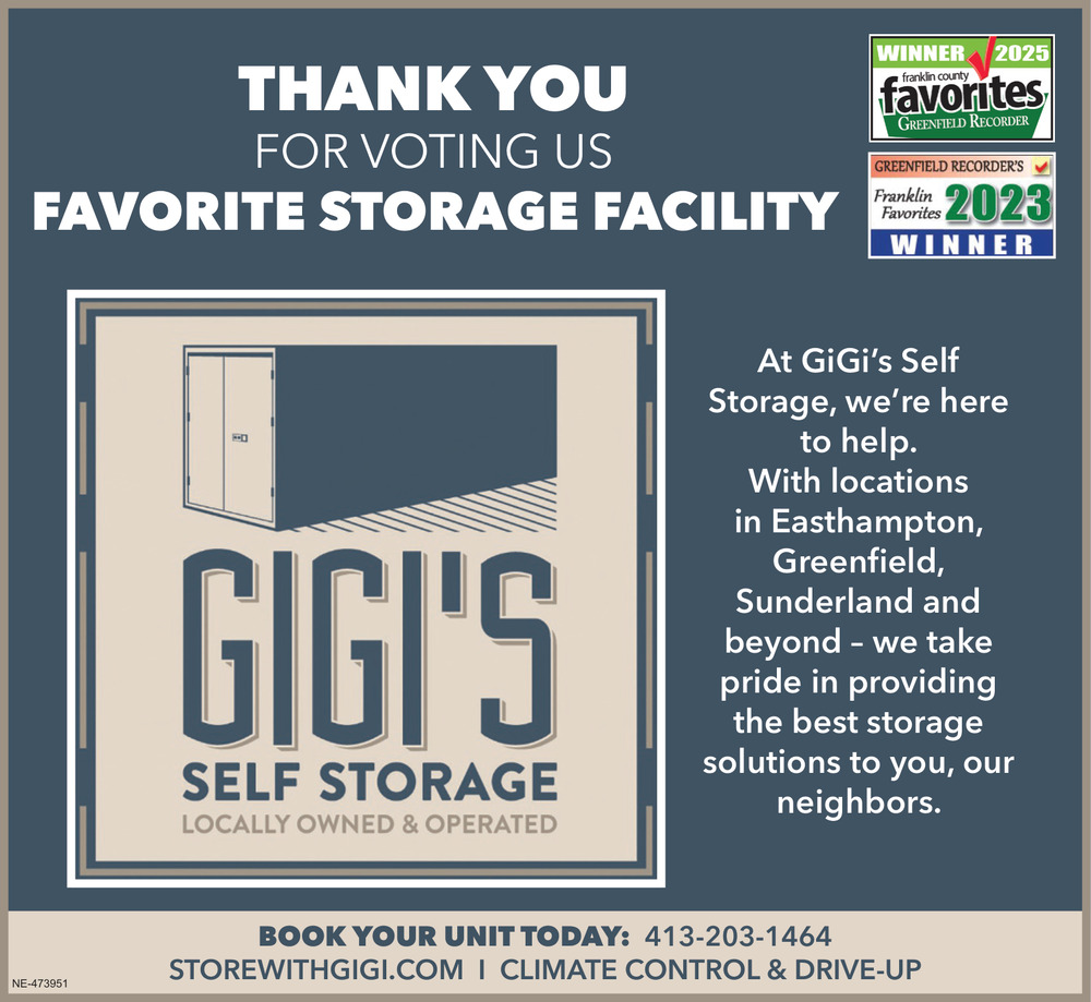 Oct 25, 2025. Gigi's Self Storage Storage Ads from The Greenfield Recorder