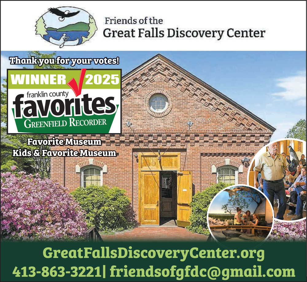 Oct 25, 2025. Great Falls Discovery Center Galleries & Museums Ads from The Greenfield Recorder