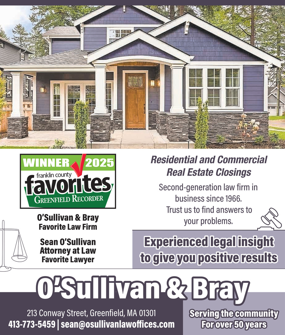 Oct 25, 2025. O'sullivan & Bray Attorneys Ads from The Greenfield Recorder
