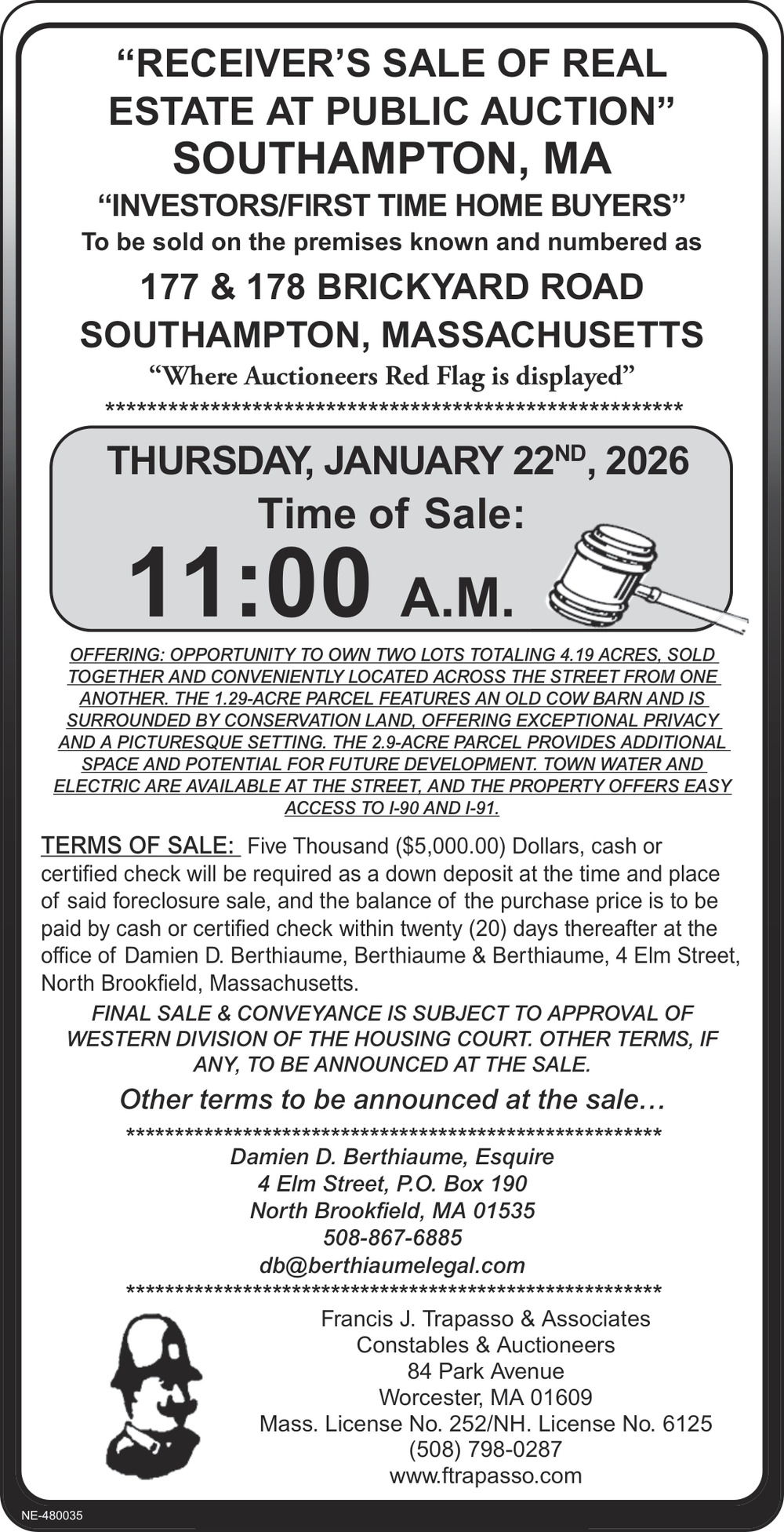 Jan 16, 2026. Francis J. Trapasso & Associates Auctions Ads from The Greenfield Recorder