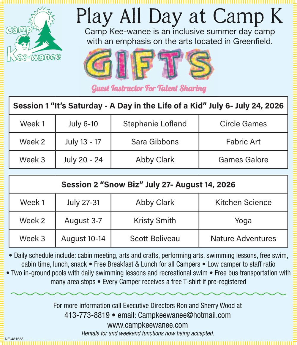 Feb 25, 2026. Camp Kee-Wanee Camps Ads from The Greenfield Recorder