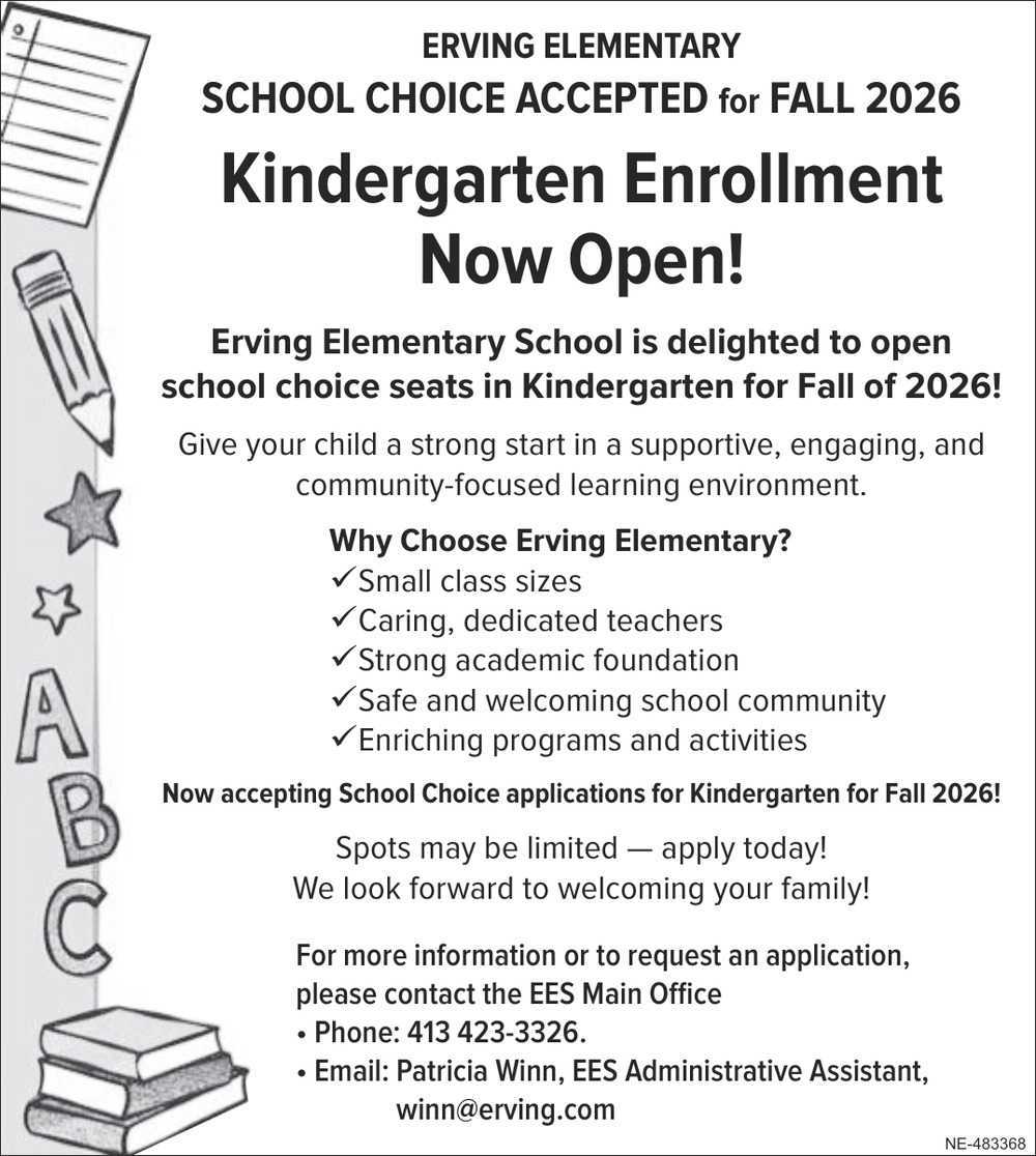 Mar 14, 2026. Erving Elementary School Education Ads from The Greenfield Recorder