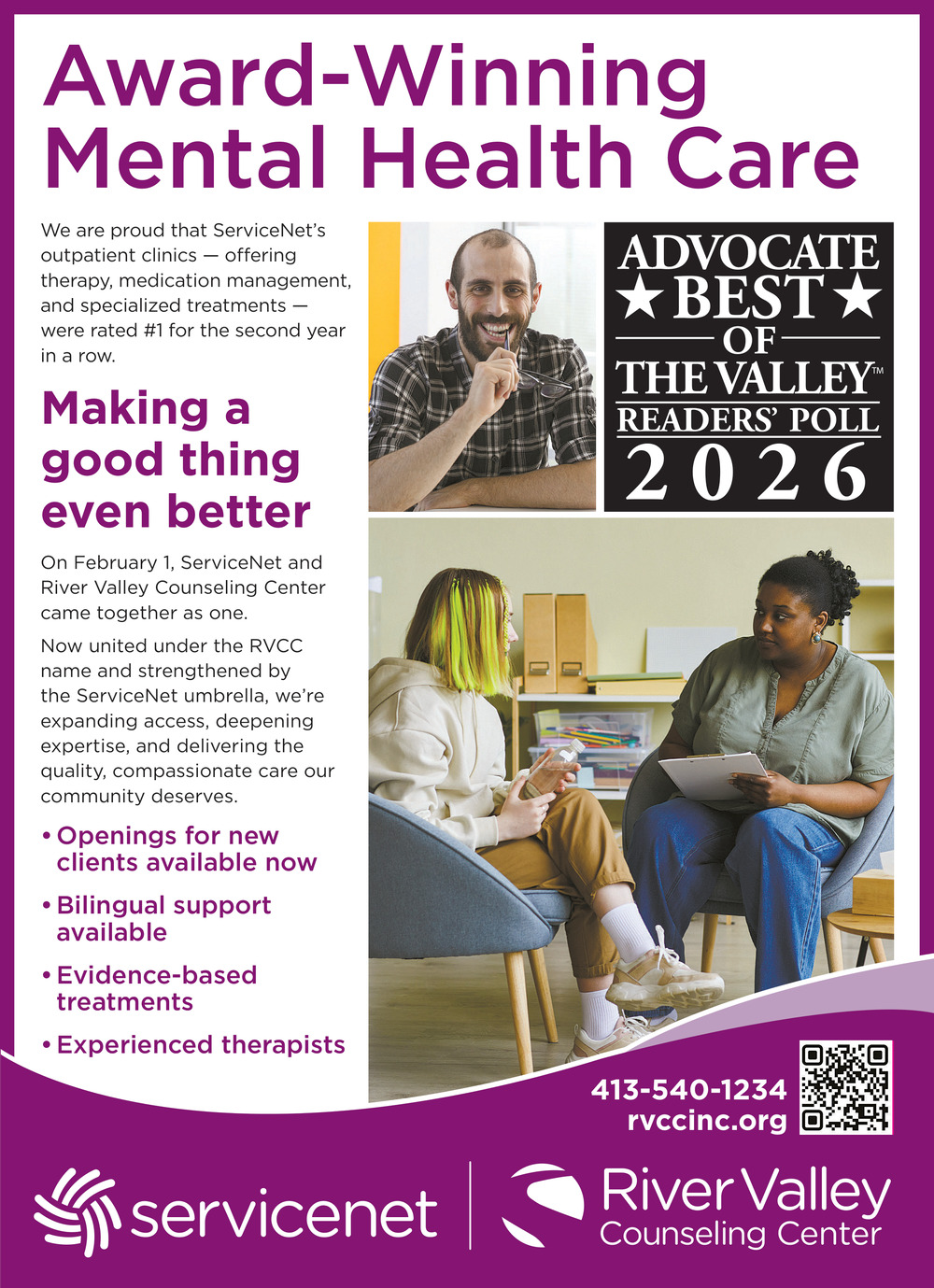 Ads for River Valley Counseling Center in Greenfield, MA