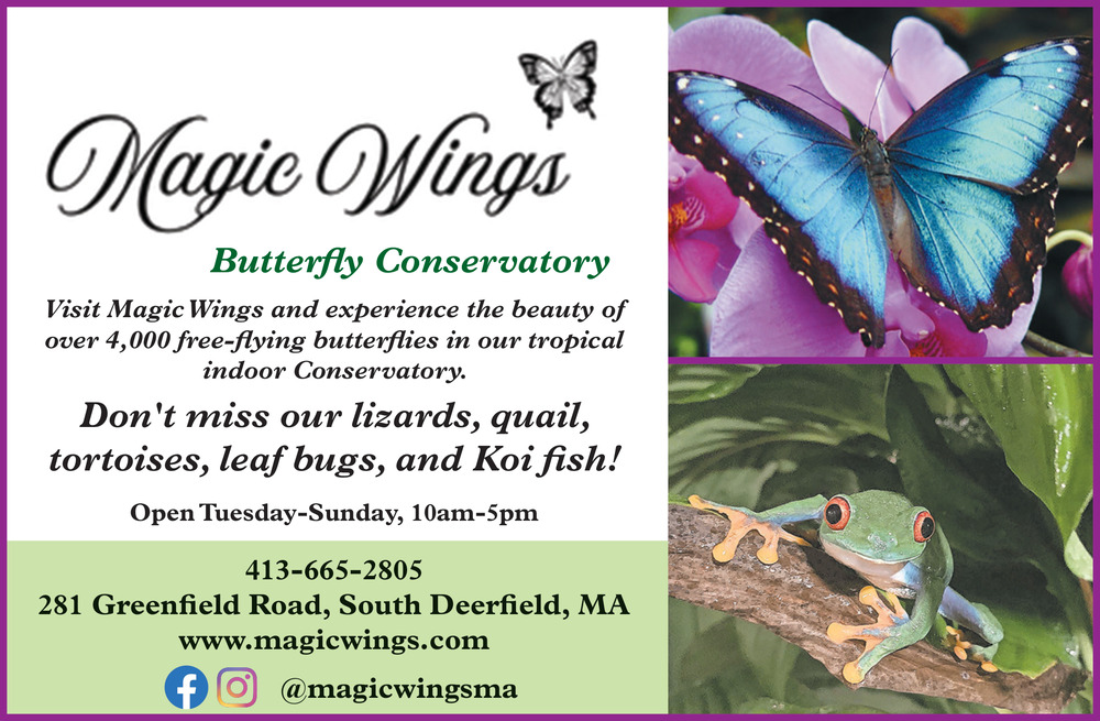413-665-2805281 Greenfield RdSouth Deerfield, MA 01373(Magic Wings Butterfly Conservatory)