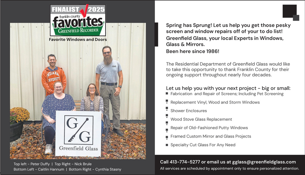 Apr 30, 2026. Greenfield Glass Home Improvement Ads from The Greenfield Recorder